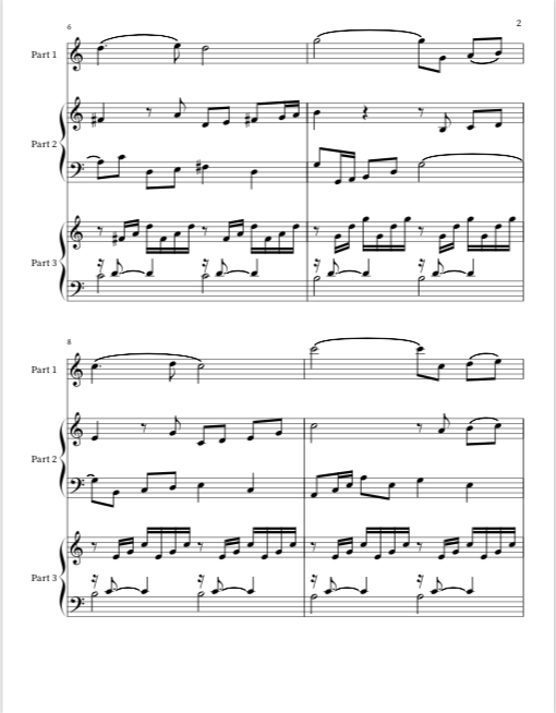 Below are recordings of all the parts, as well as parts 1 and 2, 2 and 3, and 1 and 3, to enable the playing of any part to complete the ensemble.